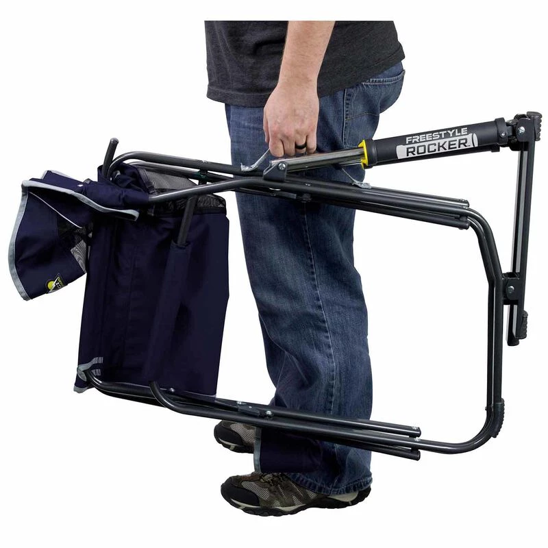With Spring-Action Rocking Technology™, the Freestyle Rocker provides a smooth and relaxing rocking motion on rough or hard terrain. Durable construction features a powder-coated steel frame designed to support up to 250 pounds. Usage is made easy by EAZY-FOLD™ Technology, which enables easy set-up and for this rocker to fold flat for transport. Conveniences include a beverage holder and carry handle.