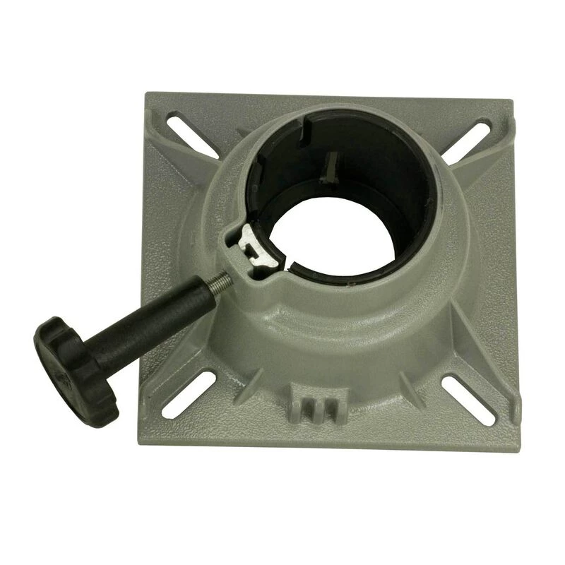Non-locking Trac-Lock™ swivel. 2-7/8″ post mount with bushing for snug fit. Made from high strength aluminum, with powder coat finish. Swivel rotates 360° and adds 3/4″ to height of pedestal. For use with 2-7/8″ fixed height pedestals.