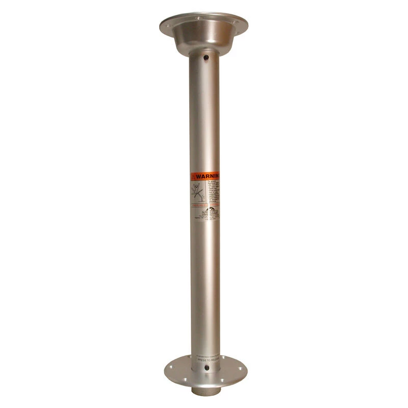 30″ locking Stowable pedestal package Package includes: 2-3/8″ diameter post, anodized aluminum. High-strength aluminum table mount. 7″ diameter aluminum floor base with 5-3/4″ mounting hole pattern, anodized finish.