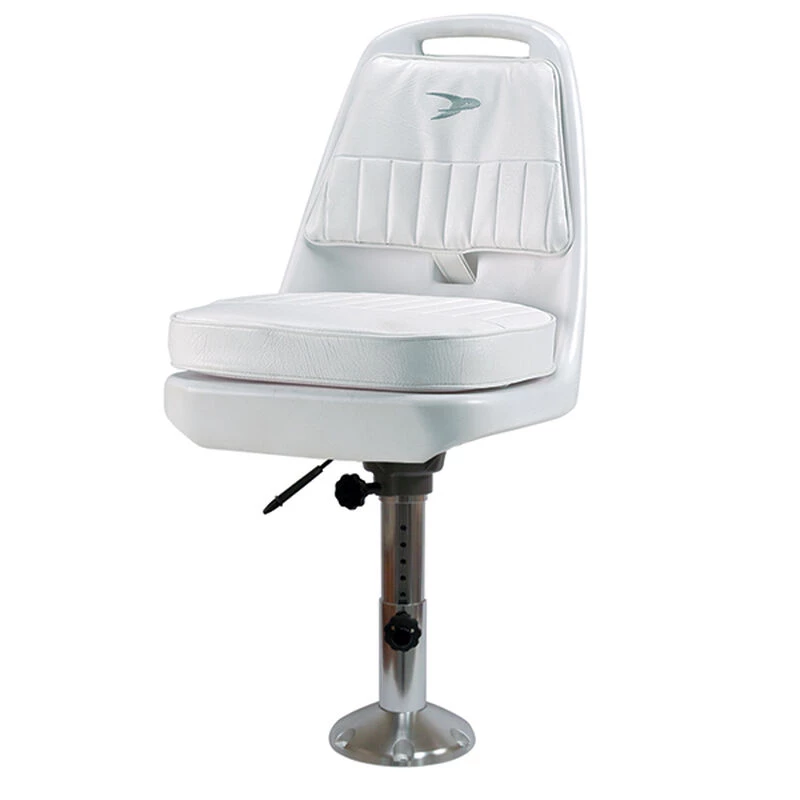 Wise 8WD013 Standard Pilot Chair & Pedestal Combo Features 8WP21-374 ABYC class AD driver 12″ to 18″ adjustable pedestal with seat slide. Chair is constructed with thick wall rotational molded plastic frame with pre-mounted plastic injection molded mounting plate with T-nut inserts. Snap on and off cushions have high compression foam padding with mesh underlay to expel moisture. UV and mildew treated marine grade vinyl with embossed vinyl surface and embroidered logo. Pedestal features polished cast aluminum 9″ base plate with recessed knurled mounting holes. 2 7/8″ diameter thick Wall extruded aluminum post. Cast aluminum seat mount swivels 360 degrees and locks down tight. Seat slide constructed of extruded aluminum with 5″ of fore and aft travel.